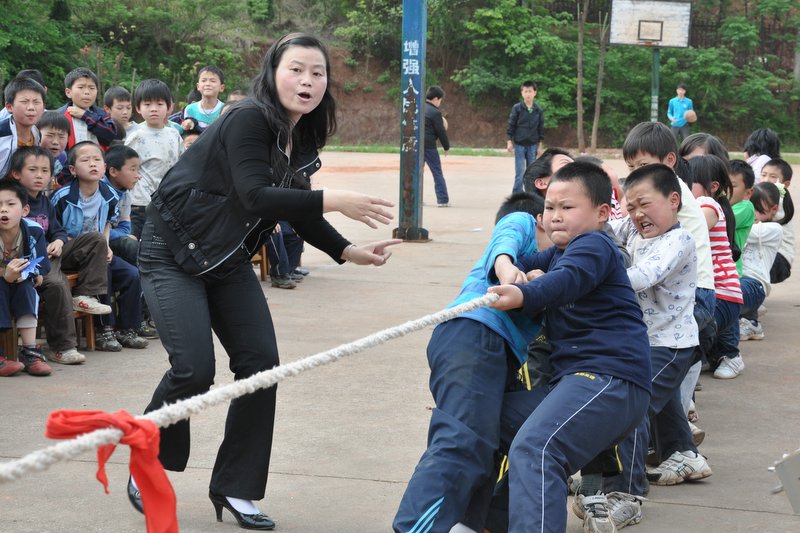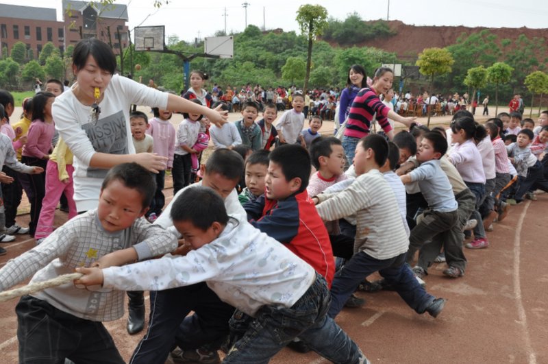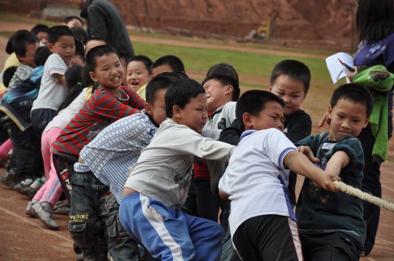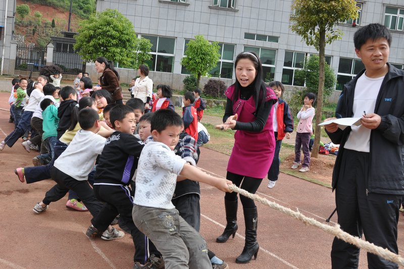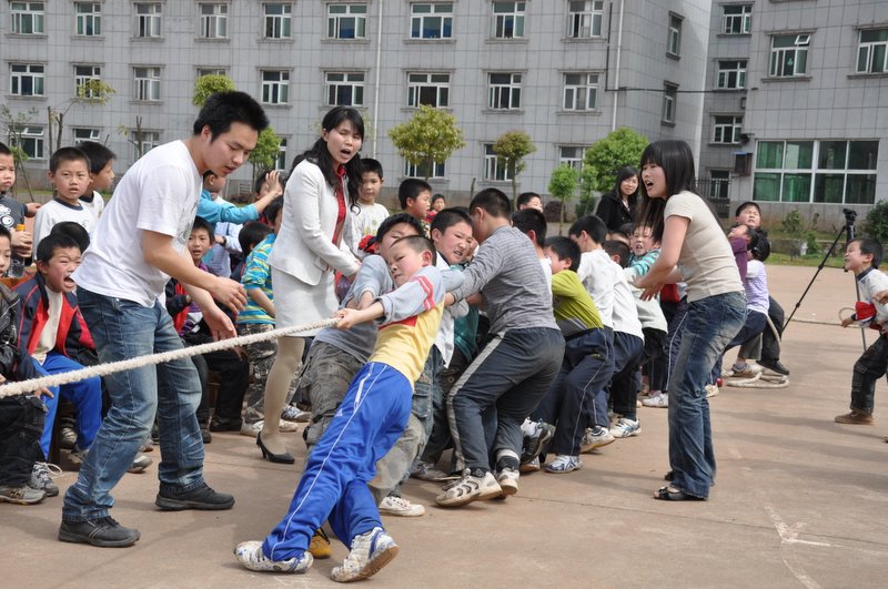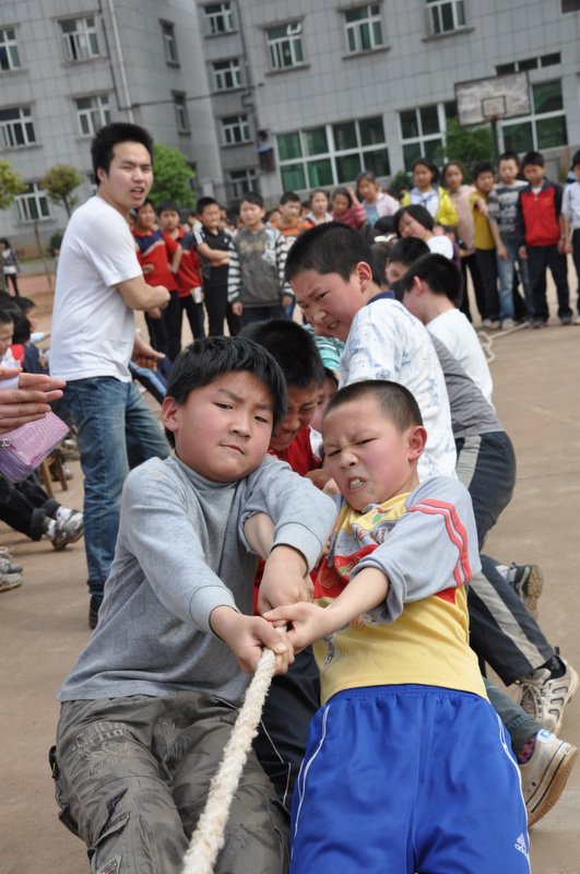 4月27日下午我校小学二年级、四年级分别举行了拔河比赛。