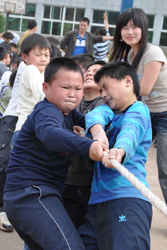 小学二年级、四年级分别举行拔河比赛
