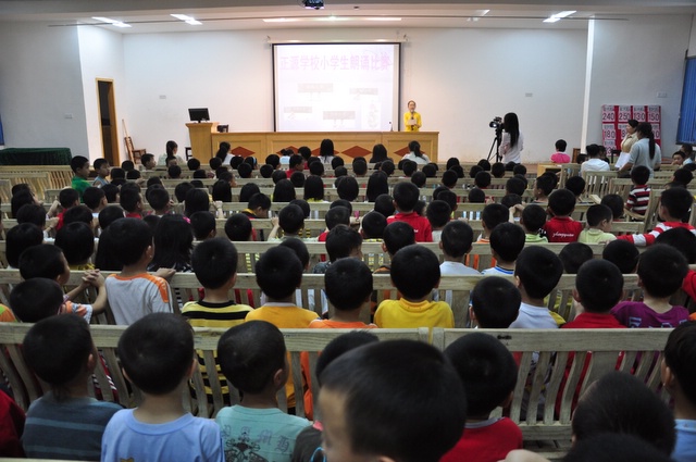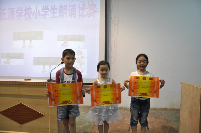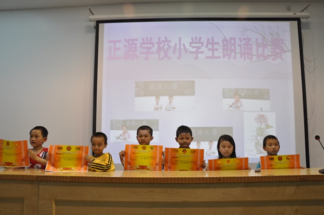 为丰富小朋友们的校园生活,培养他们从小对朗读的兴趣,提高朗读水平,我校一年级组于2010年5月17日晚举行朗诵比赛。本次比赛选手们都做好了充分的准备,个个语音标准,声情并茂,引起了全场小朋友的共鸣。最后,朗诵比赛在大家的深情齐诵下圆满结束。