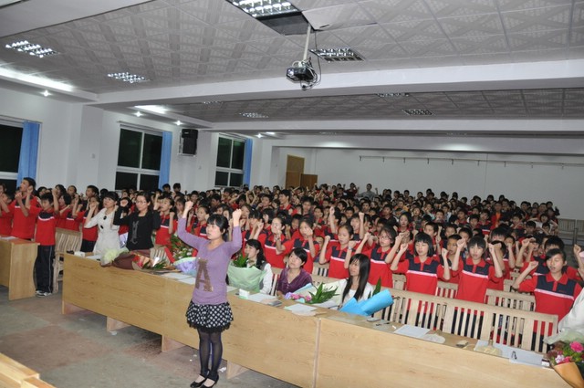 最后,师生一起合唱《感恩的心》,并配以手势语,在优美的歌声中,学生代表向全体六年级老师献上了鲜花,感恩师长,将比赛推上高潮。