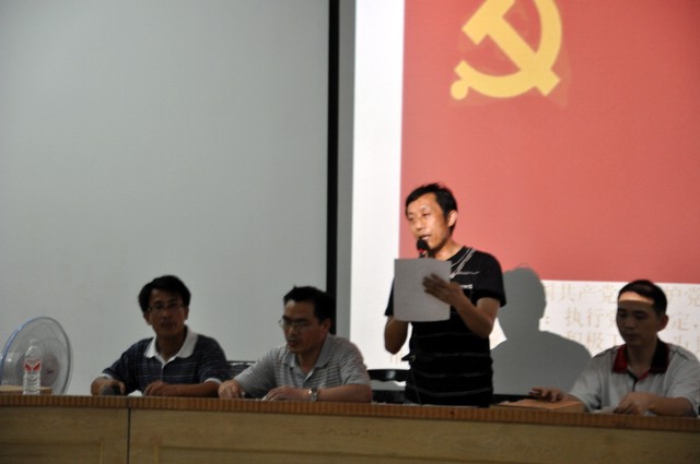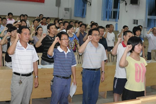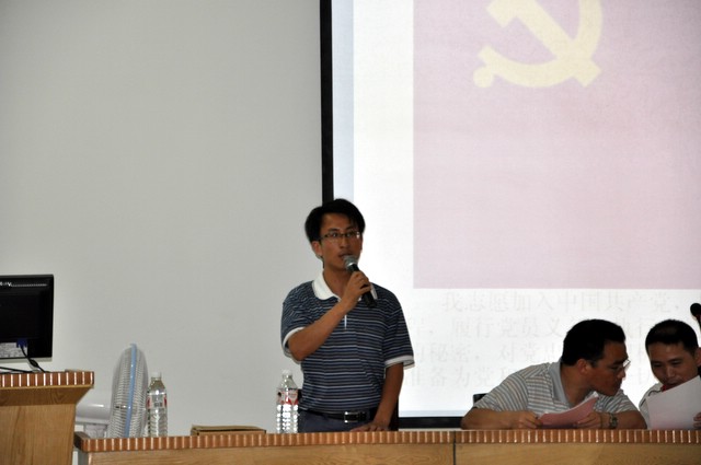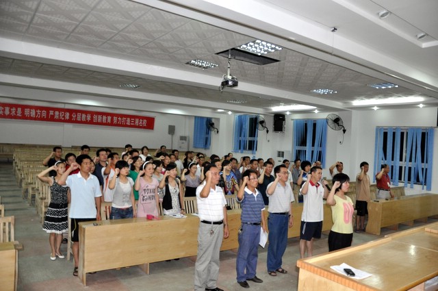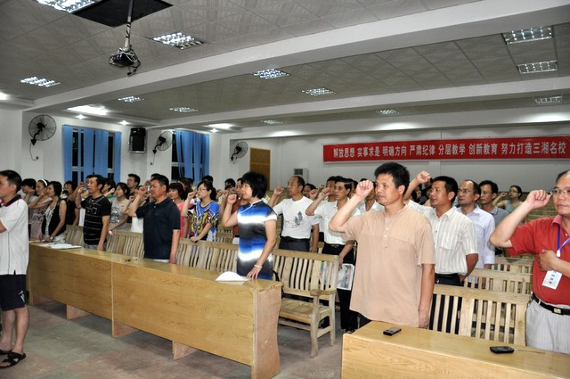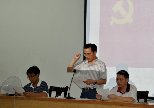 7月1日晚上7点30分,我校党支部在报告厅召开“创先争优暨庆‘七·一’重温入党誓词民主生活会”,70多名党员参加会议,会议由支部成员校团委书记刘生机同志主持。首先是重温入党誓词,全体党员面对鲜红的党旗集体宣誓,再一次理解入党誓词的真谛,牢记自己对党的誓言。接着,支部成员及各党小组组长纷纷上台作党员公开承诺,表示将在自己的本职工作岗位上为党旗争添光彩,为学校发展作出贡献。毛小波书记作重要讲话,要求全校党员齐心协力,积极参与到全党争先创优活动中来,立足本职岗位,发挥先锋模范作用,为学校实现创办三湘名校的目标贡献一份力量。最后,各党小组成员在会议现场通过公开投票方式,推选出8名校优秀党员。