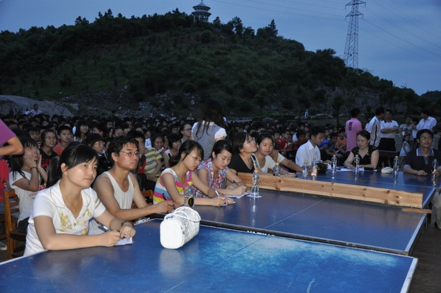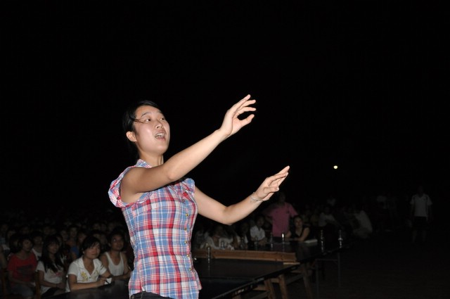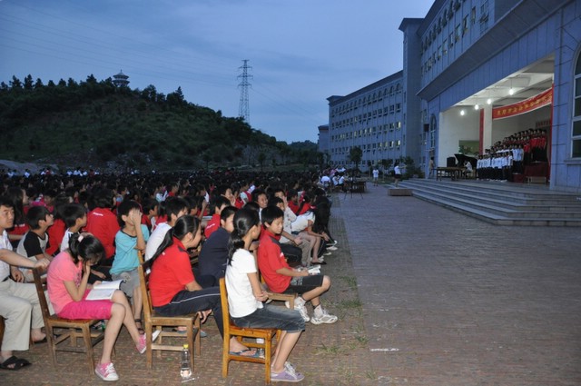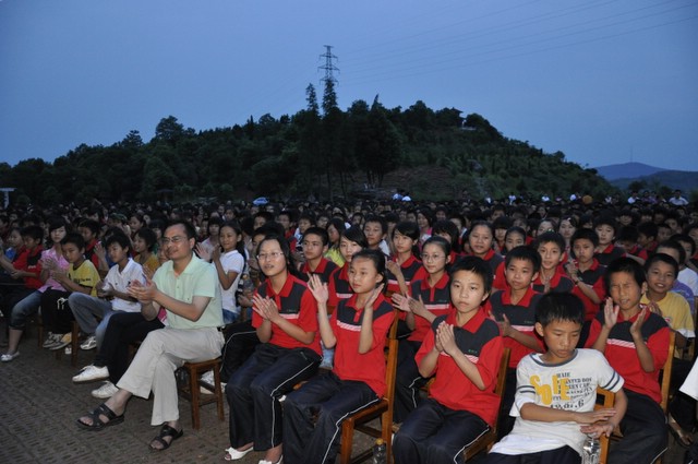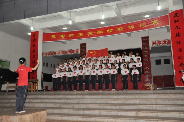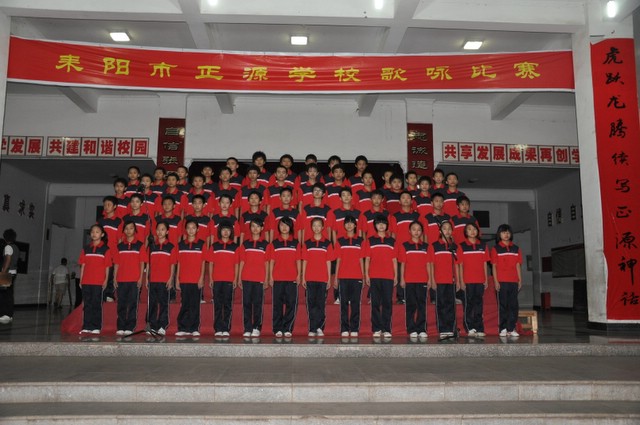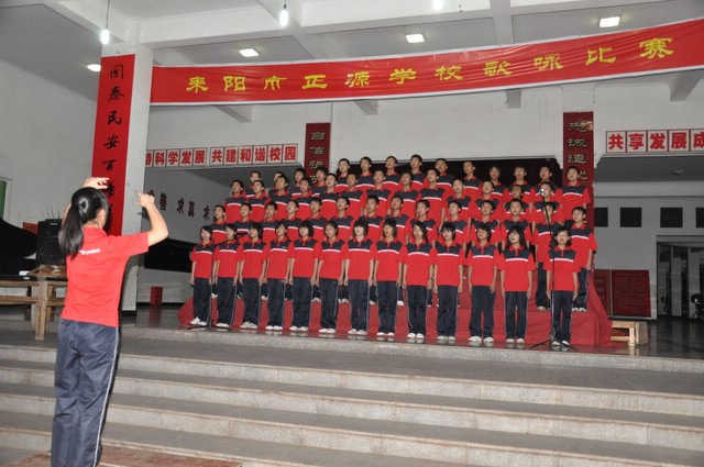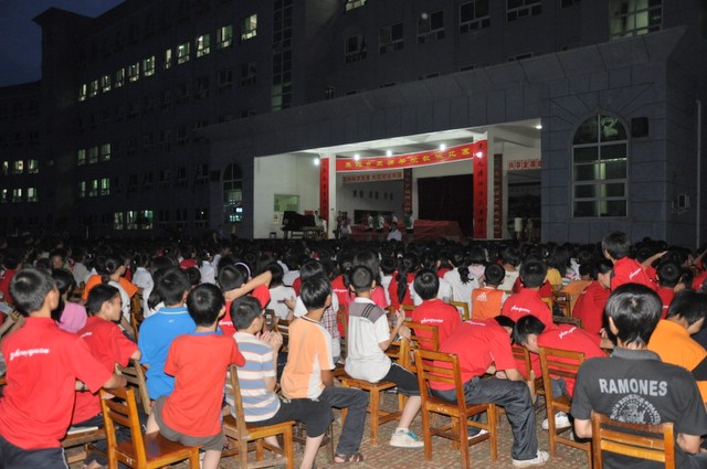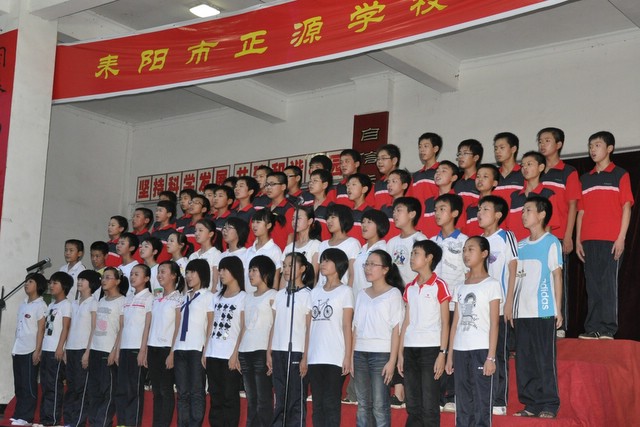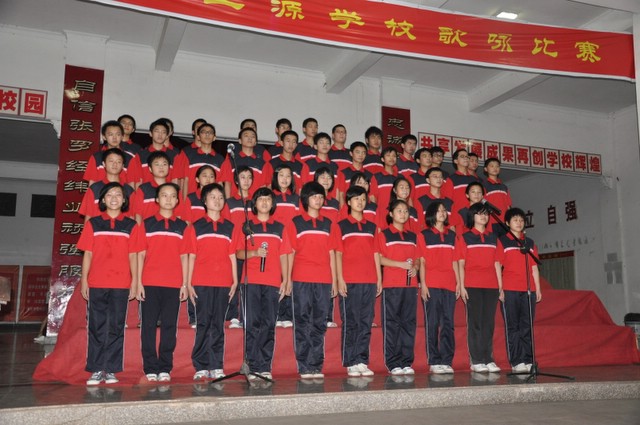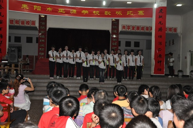 日晚上,正源学校初中部的学生齐聚在学校广场,举行歌咏比赛。
