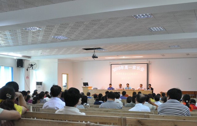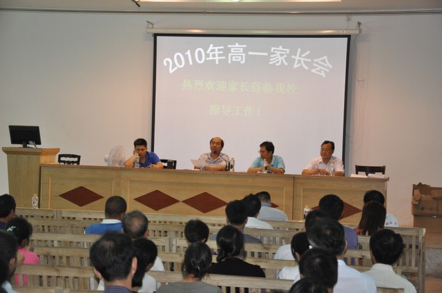 7月17日中午,在报告大厅召开高一年级学生家长会,罗校长和招生办主任王小灿以及高一年级主任李康活分别在会上讲话。