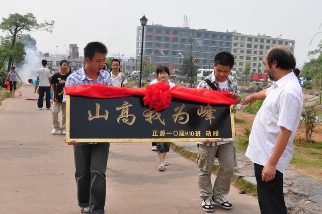 9月1日上午,在一片鞭炮声中,2010届高10班同学集中送匾到正源学校,感谢母校的栽培。在班集体送匾的同时,邓建园、李尧、曾素林、王小军、冯园惠等同学也和家长一道给正源学校送匾。