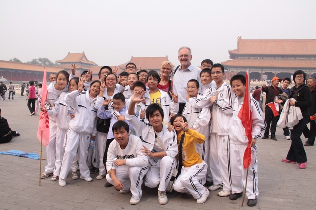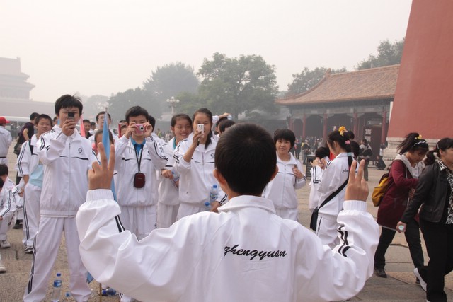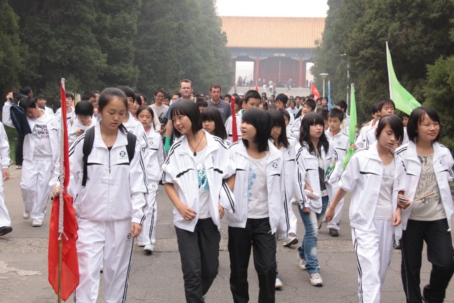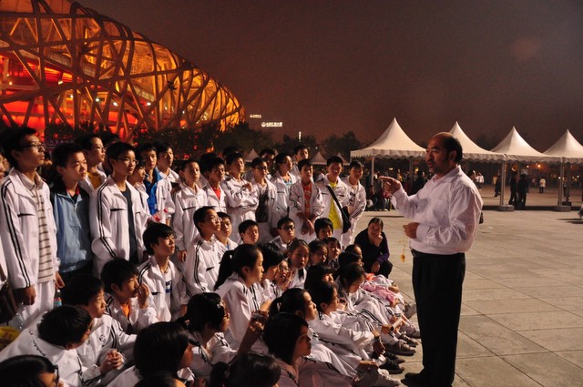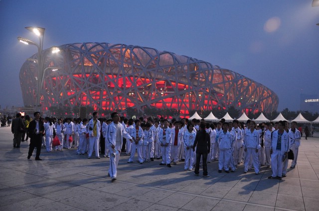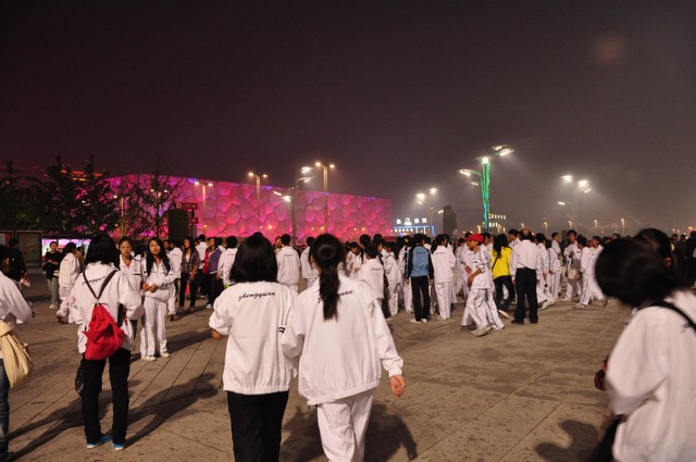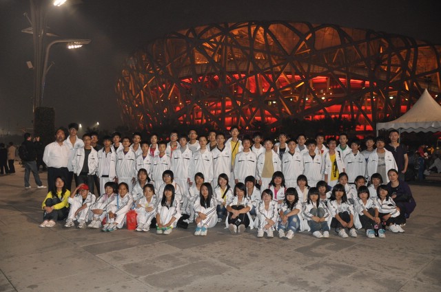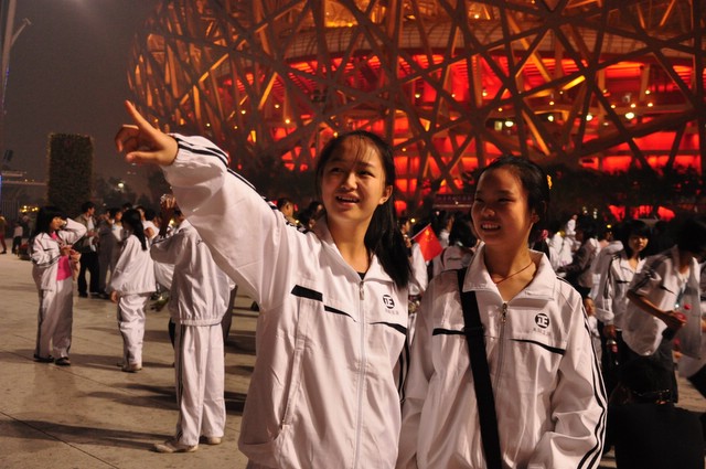 10月1日下午,走进奥林匹克公园,亲眼目睹鸟巢、水立方的雄姿,师生们兴高采烈,为祖国的强大和科技文明进步感到无比骄傲和自豪。