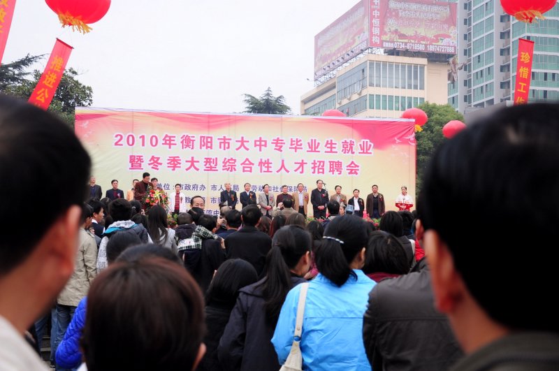 11月20日,衡阳市2010年大中专毕业生就业暨冬季大型综合性人才招聘会在莲湖广场举行。当日,有300多个用人单位参与招聘,有万余人参加应聘。正源学校为这次招聘会提供了130多个岗位,通过现场交流和面试,有几十个应聘者将到学校接受复试。