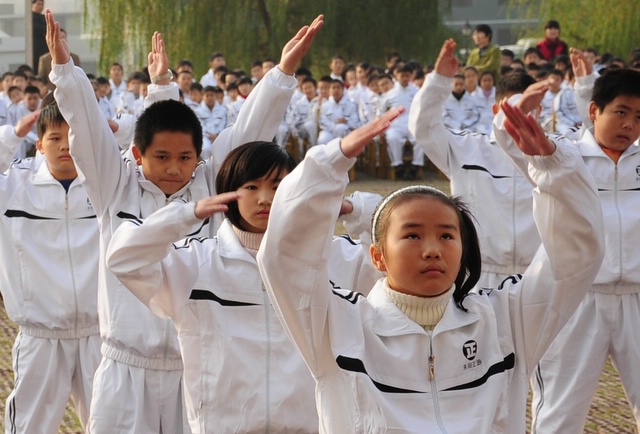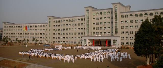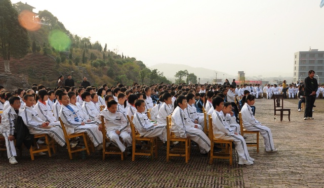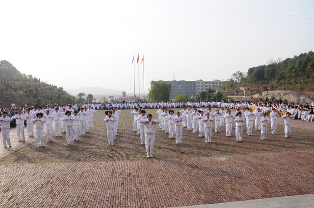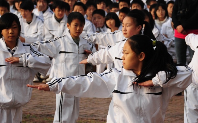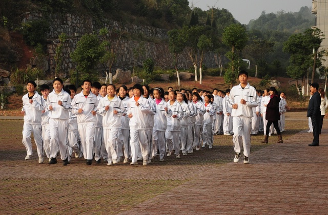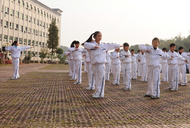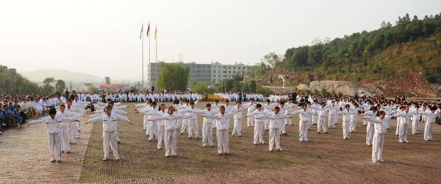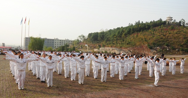 2010年11月23日,初一年级26个班的学生在学校广场举行体操比赛。同学们分班依次迈着整齐的步伐,呼号入场。在比赛中,同学们十分认真完成规范动作,誓为本班争荣誉。