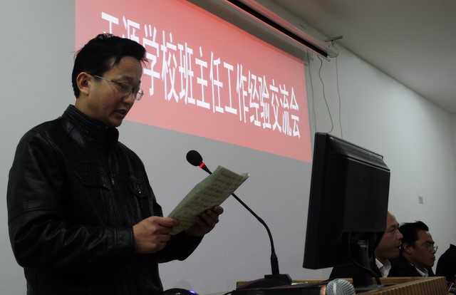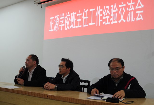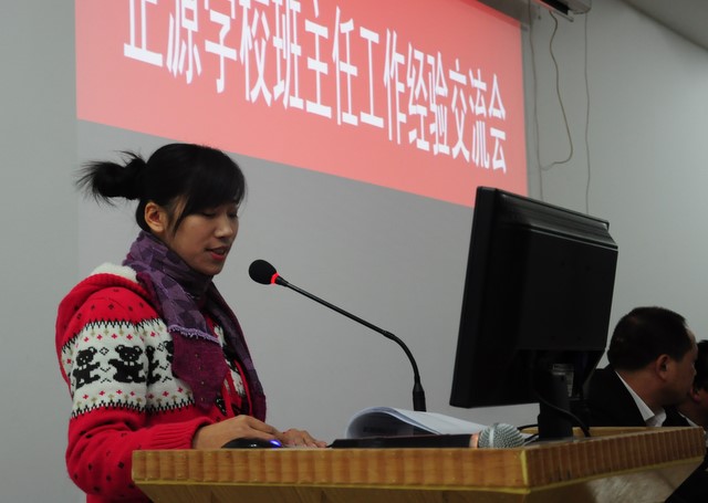 易燕、张满初、左都良等九个发言的班主任分别来自不同的学部。代表们的发言内容深刻,场面精彩,都是他们长期以来班主任工作的经验之谈,对其他班主任很有教益。小学二年级班主任曾纯老师的主要经验是做学生的好朋友、好妈妈;高二年级班主任左都良老师认为要当好班主任就要做到“勤”、“严”、“慈”,勤走勤向,严字当头,慈在其中;初三年级吴兰兰老师总结的经验是“三抓”——抓管理、抓操行分、抓学风。而“爱心”、“恒心”、“责任心”则是所有发言班主任表达的共同体会与感受。