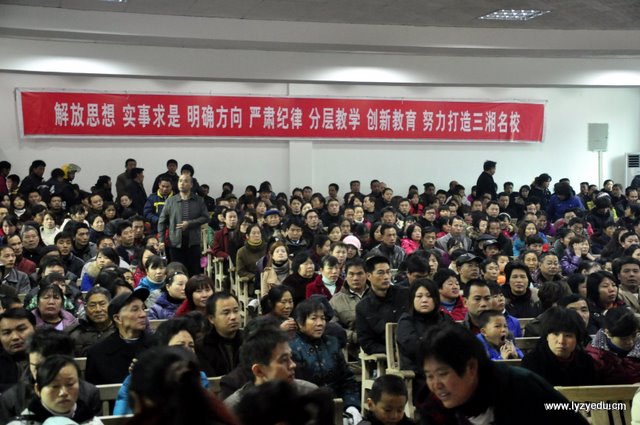 会议由初一年级学生主持,年级副主任伍中钺向各位家长汇报了本年级师资配备、教学特色、学生的学习成绩以及养成教育等情况;接着,学生代表陈明远、雷霖、教师代表谢玉林和梁沐同学的家长以及周丽婷同学的家长先后发言;最后,罗校长作主题报告。
