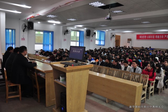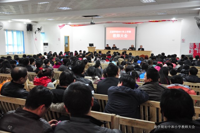 为迎接新学期开学,做好小学和初中学生的报到注册及有关管理和服务工作,2011年2月18日下午,在报告厅召开小学和初中教师大会。