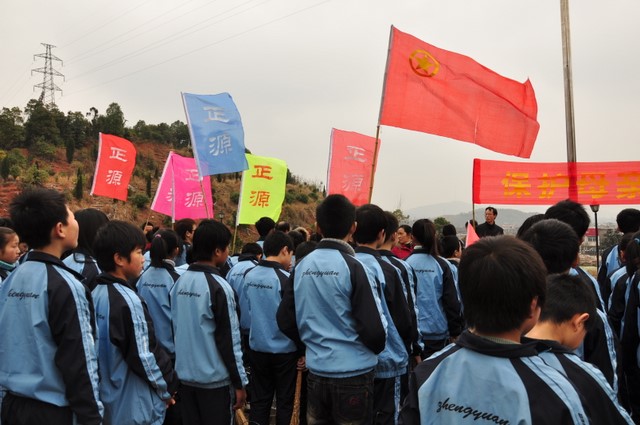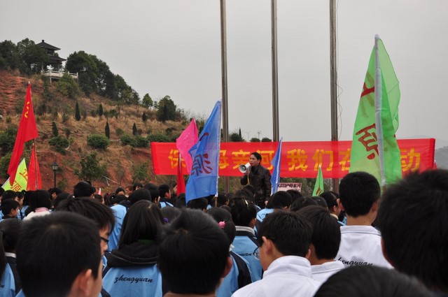 出发之前,大家聚集在学校广场,举行了简单的仪式,校团委书记周文根、德育处常务副主任张红平分别就这次活动的意义、内容、做法以及安全事项作了讲话和安排;学生代表陈明远也作了发言,表示参加活动的意愿和决心。