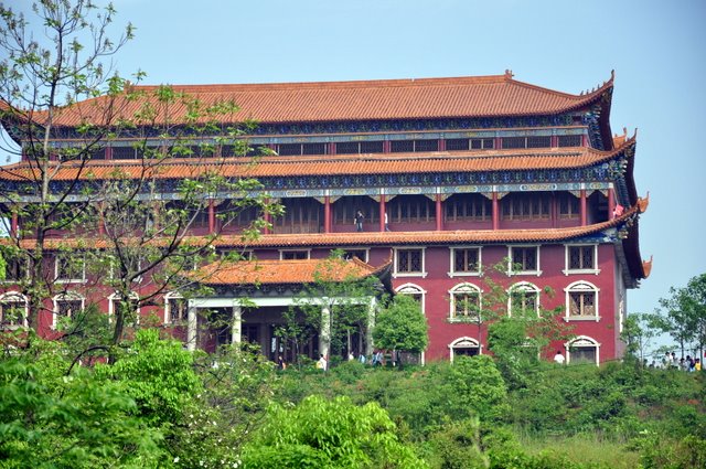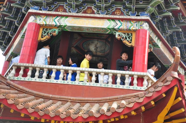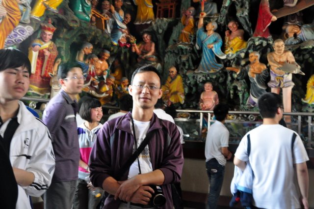 在规模宏大的盘古庙,同学们瞻仰了盘古殿,大雄宝殿、念佛堂、五百罗汉等殿堂佛像,为盘古开天辟地,拯救人类,推进人类文明的不朽功绩而崇敬,为气势恢宏,古色古香的建筑和神态各异、栩栩如生的雕塑而赞叹。