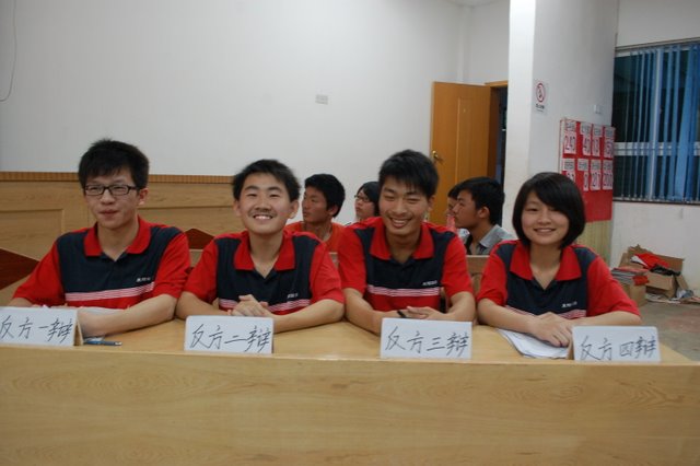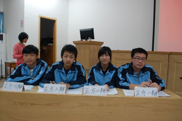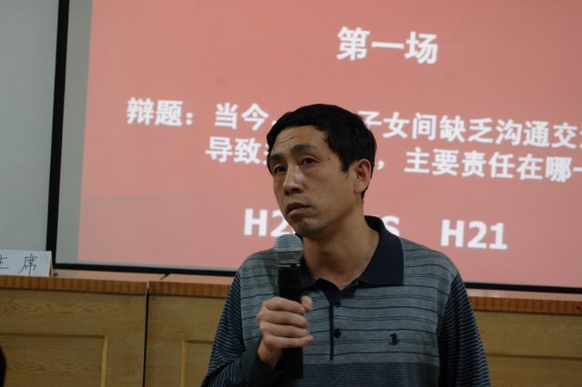 参加第一场辩论的是H20VSH21班,正反(H20)一辫资成吉同学首先陈词三分钟,他引用“养不教,父之过“的古训,并运用事实,说理等方法,论证自己的观点“主要责任在父母”;反方立即抓住对方的弱点,侃侃陈词,极力辩驳,得出了“主要责任在子女”的结论,反方三辩郑时亮同学表现尤为出色,唇枪舌剑,以连珠炮的反击,锐不可挡。