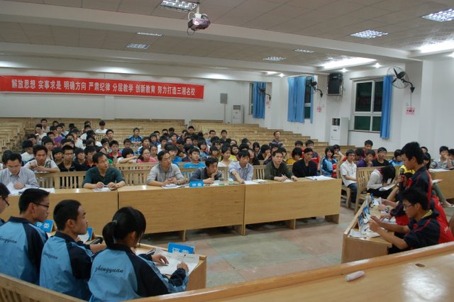比赛由戴媛同学主持,高二年级主任毛小波及周文根、王春云、刘运华、罗文、胡云等在评委席上就坐。