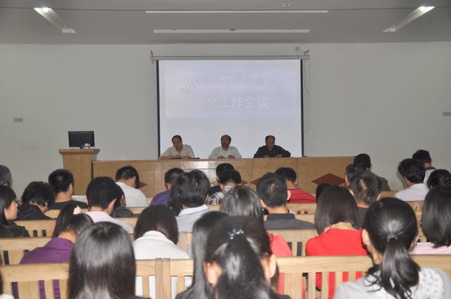 张红平副主任在安全报告中,通报了近期我校发生的四起群架斗殴恶性事件,并联系我市近年、近期发生的学生溺水事件、网吧斗殴致死的典型事件,对我校安全工作提出了五点要求:一是提高做好安全工作的责任感和紧迫感的认识;二是深化学生的安全教育意识;三是严肃纪律,坚决杜绝安全事故的发生;四是强化检查,严格学生作息时间,严格执行请假制度;五是实行安全责任追究制。特别强调了防私自下河洗澡、防交通事故、防打架斗殴和群殴、防食物中毒、防学生携带管制刀具、防意外事故、防逃校等15项安全防控措施。要求各学部、各级领导要以对学生、家长、社会高度负责的态度,牢固树立“安全第一”的思想,绷紧安全这根弦,做到居安思危、防患于未然,警钟长鸣,常抓不懈。