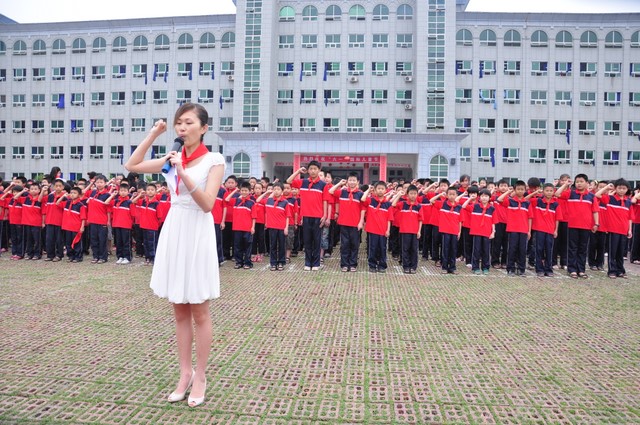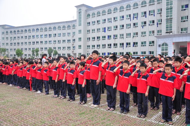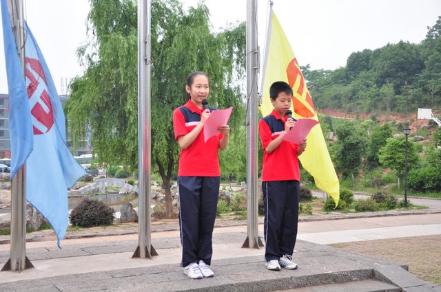 早上7:30,小学部全体师生3000多人身着节日盛装,排着整齐的队伍,踏着整齐的步伐,陆续列队来到学校操场上,共同欢庆“六一”国际儿童节。小学部学部主任刘德在大会上宣布欢庆“六一”国际儿童节入队仪式开幕。随后,主持人王敏瑶、周逸群两位同学登台主持。入队仪式共有十项议程,先是升国旗、唱国歌,七位身着迷彩服的高年级同学踏着整齐的步伐,扛着国旗,在庄重的国歌声中徐徐拉上国旗,在清风中,国旗迎风飘摇。紧接着,十位少先队员护送少先队队旗在主席台前与全体少先队员一起歌唱少先队队歌。接下来依次为新少先队员入场、授新队员标志、新队员宣誓、新队员代表发言和辅导员讲话,最后是全体少先队员呼号。入队仪式结束后,全体小学生在小学部各班参加游艺活动。