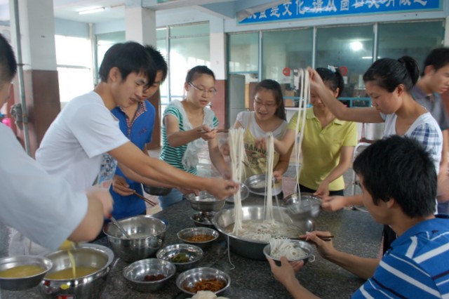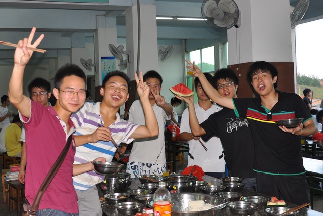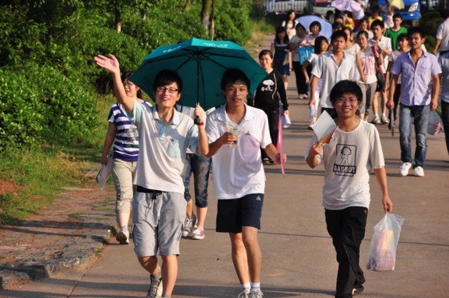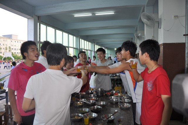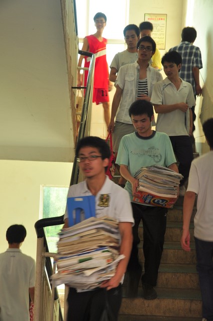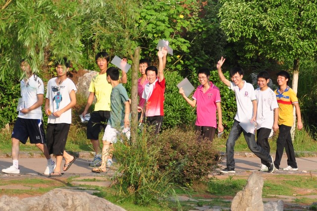 傍晚,结束了高考的同学们按照老师的安排,把各自的书箱搬到指定场所,交给学校统一处理。晚饭之后,各班集体联欢。