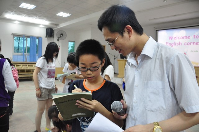 晚上,我校初二年级再一次举行英语角活动。来自奥赛班的