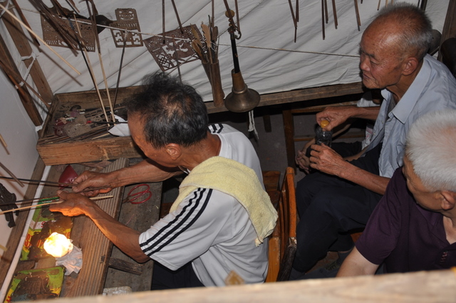 师傅们在摆弄皮影画面