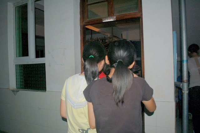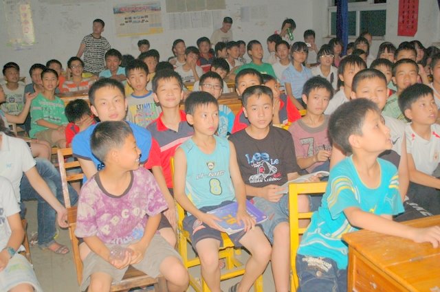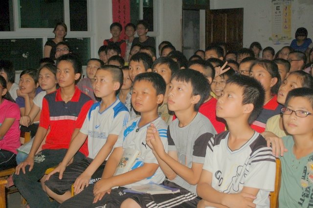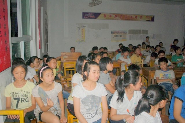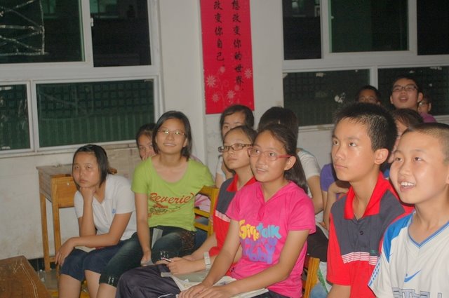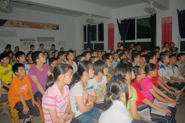 7月4日学生在观看皮影戏