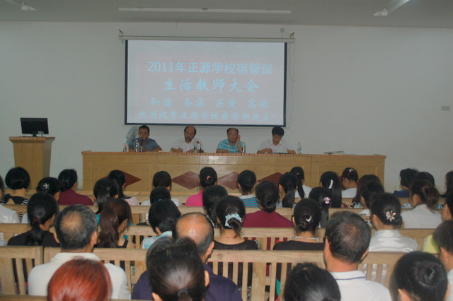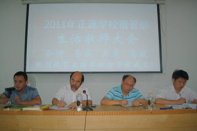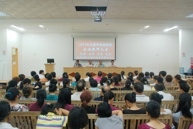 宿管部的前身即正源学校的生活部,因学校的快速发展,组建宿管部迫在眉睫。会上,宿管部主任罗新城宣布了宿管部领导班子及各楼栋栋长、栋长助理名单。宿管部常务副主任谭小云就组建后的宿管部工作职责、管理办法、工作思路等几个方面做了详细介绍,德育处常务副主任张红平就进一步完善和建立宿管部的人事、内务、卫生、纪律及跟餐制度作了详细说明。
