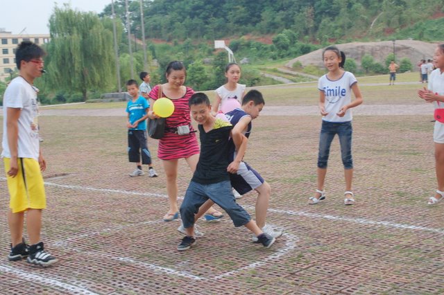此次开展的一系列课外活动,包括拉网捕鱼、两人三足跑、踩气球比赛、夹气球比赛、击鼓传球、跳长绳、过龙门、喊数抱团等游戏名称。从已开展的活动来看,到处可以看到学生们开心的场面,真正使活动融汇到教育中。