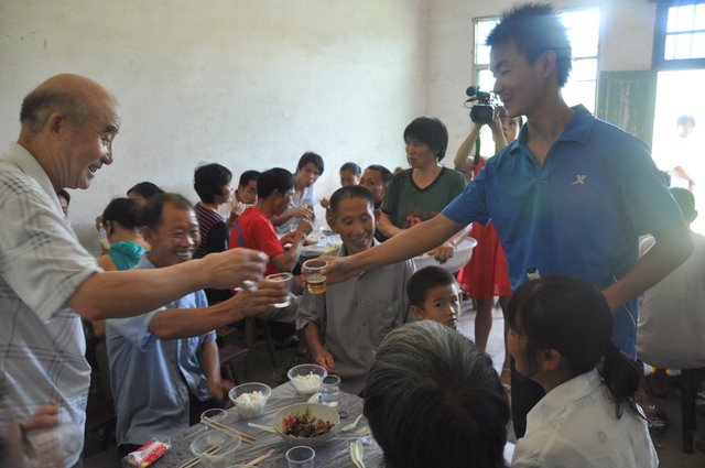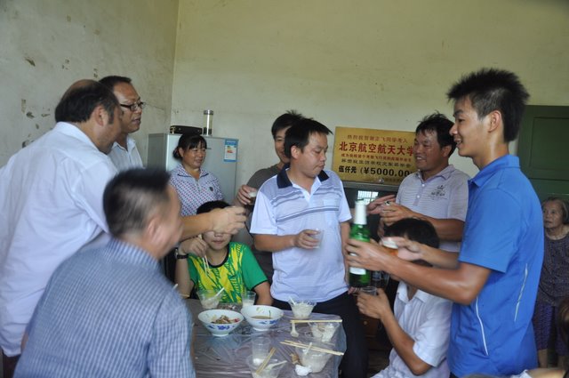 宴席上,罗校长亲切与谢正飞的父母交谈,不仅带去学校诚挚的祝福,还深入了解了谢正飞同学的成长经历。宴会结束后,罗校长还与当地村民及适龄儿童进行了沟通,勉励他们向谢正飞同学学习,长大之后为国家作贡献。
