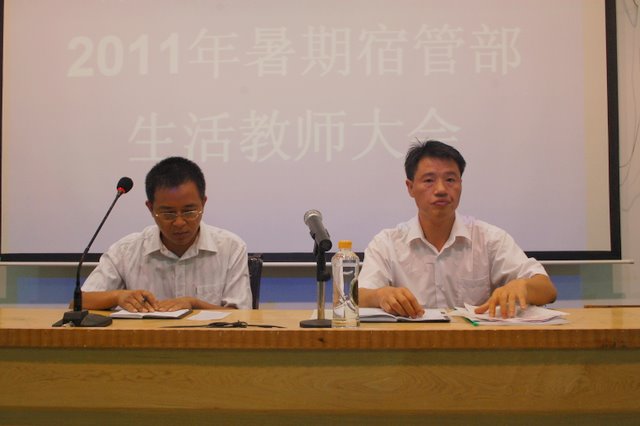 宿管部常务副主任谭小云在会上作了《制度管人,吹响集结号角;群策群力,打造品牌团队》的专题讲话。他说,宿管部自成立以来,我们全面策划,开拓创新,提出了“一个目标、集两个心、三种领导力量、四项基本原则、五个到位”的工作思路,制定和完善了《生活教师请假制度》、《一日工作常规》、《安全卫生制度》、《跟班看餐制度》和《月工作考评方案》等规章制度,力求做到有制可依、有制必依、守制必严、违制必惩,要在继承中求发展,在改革中求创新。