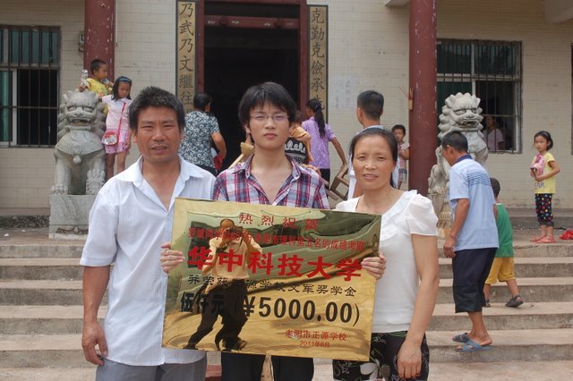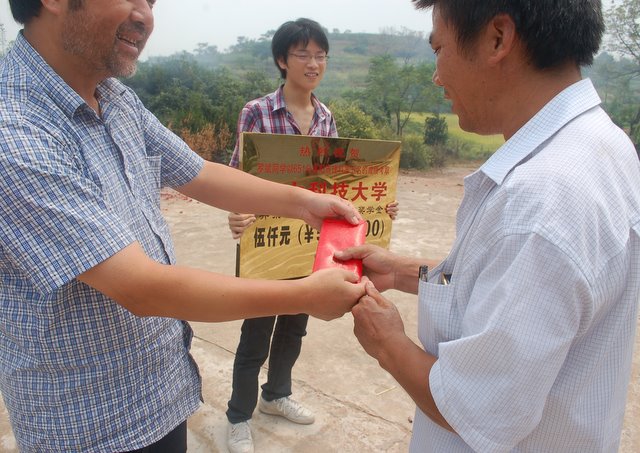 我校为罗斌同学送去奖学金5000元