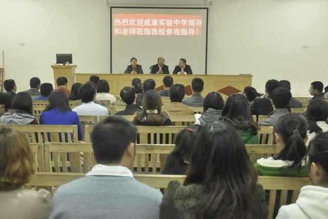 2011年11月18日,衡阳市成章实验中学的教师一行50多人在雷玉超副校长的率领下我校参观指导,传经送宝,受到了我校热烈欢迎。在罗校长和初中部的负责人一起陪同客人们参观了校园之后,各位老师分别到初中各年级以及准高一听课。上年11点,在报告厅集中进行交流。交流中,罗校长首先代表正源一万多师生对各位同仁表示欢迎,就正源学校的教育教学情况特别是在管理、生活、以及创新教育方面向客人们作了介绍。接着,初中部主任曾良古在发言中盛赞成章中学曾经给他留下的美好印象。交流会上,成章中学雷副校长也发表了热情洋溢的讲话,对正源学校的管理工作及办学成果给予了高度赞扬。