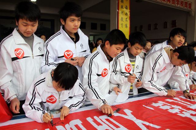 出征之前,志愿者们纷纷在“创先争优当先锋,文明城市我给力”的横幅上签下了自己的名字名,表达各自学雷锋的信心和决心。