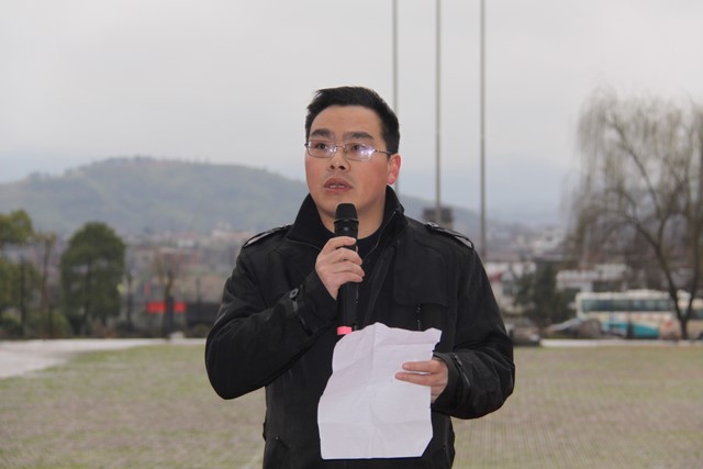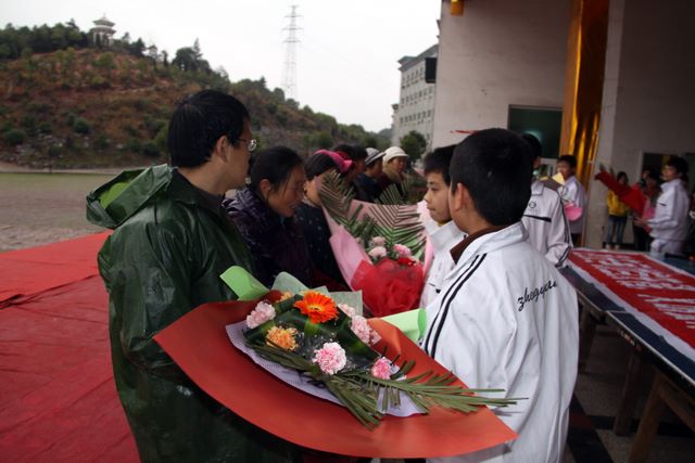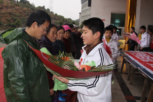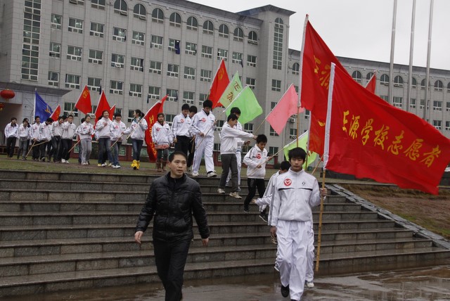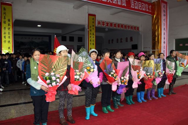 出征仪式由学校团委书记周文根主持,党支部书记毛小波作了讲话,他向同学们讲述学雷锋的时代意义,号召同学们向雷锋学习。在出征仪式上,志愿者们向学校的保洁员敬礼、献花,表达感谢和祟敬之情。接着,校广播站几名播音员朗诵了赞美学校保洁员的诗歌《敬礼,正源的美容师》。
