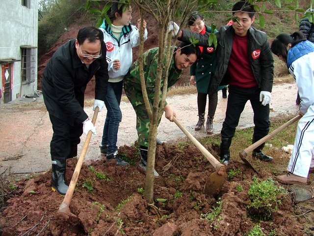 团委书记周文根教学生植树