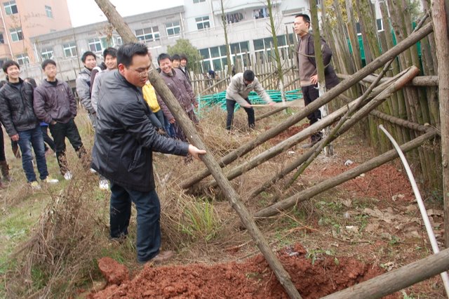 当日下午,在班主任的指导下,同学们分工明确:有扛树的、挖坑的、浇水的…,每个人都参与了这次非同寻常的植树活动。