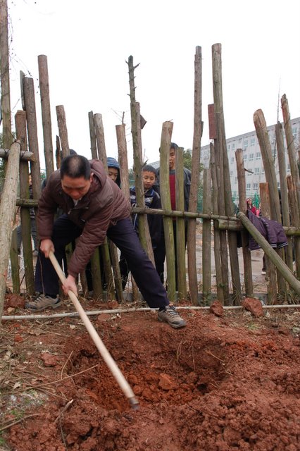 俗话说“前人栽树,后人乘凉”,高年级学生植树,吸引了很多低年级的学生围观,从小孩子的眼神中可以看出他们对这些学长的敬仰之情。