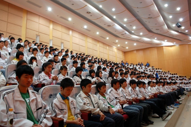 我校的学生们一到文体中心门口,就有志愿者前来带队,而且两排志愿者边打招呼“老师好”边行九十度的鞠躬礼。这特别的礼遇让有的同学不知所措,有的顿时受感染而回以一个温馨的微笑。论坛老师们的讲述、忏悔感人致深,震撼人心,有些同学感动得热泪盈眶。
