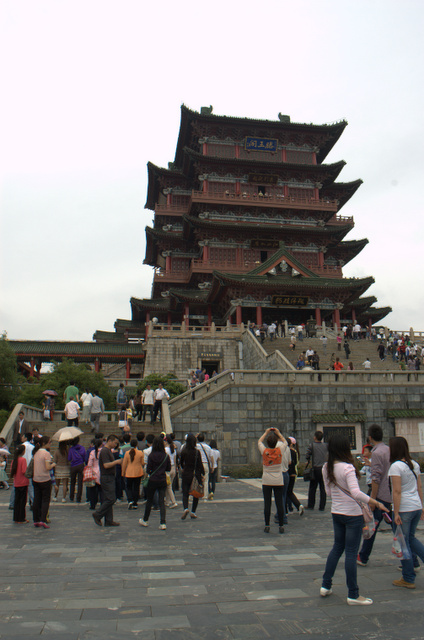 28日一大早,大家便赶到洞庭湖畔的岳阳楼景区。一踏进饮誉全国的巴陵胜地,便是造型各异的“五朝楼观”用青铜打造的唐宋元明清楼阁模型。大家边欣赏边拍照,不亦乐乎。岳阳楼为四柱三层,纯木结构,楼中四柱高耸,顶起飞檐,相互咬合,彼此牵制,金碧辉煌.登上岳阳楼,极目远眺,洞庭湖水波荡漾,气象万千,水天一色。置身其境,感慨系之,难怪文人骚客出口成章,在这里留下了许多千古佳句。在岳阳楼前,我们的团队拍下了第一张“全家福”。