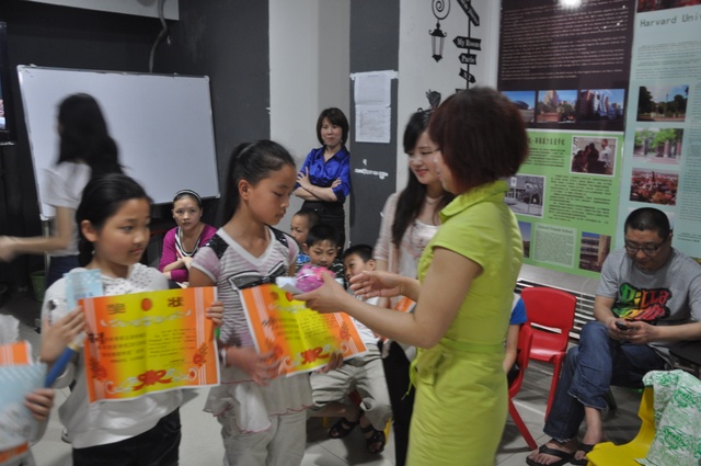 2012年5月6日,正源新概念英语世界召开2012春季班学生结业典礼暨家长会。会上,刘静老师首先对2012年春季班英语培训情况进行了总结,并对下一步培训计划向家长陈述,提请各位家长对培训工作提出意见和建议。接着,各任课老师也向家长们汇报了孩子们的学习情况,随后,老师家长一起为优秀学员颁奖。最后,获奖学生和老师合影留念。
