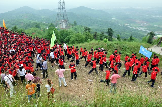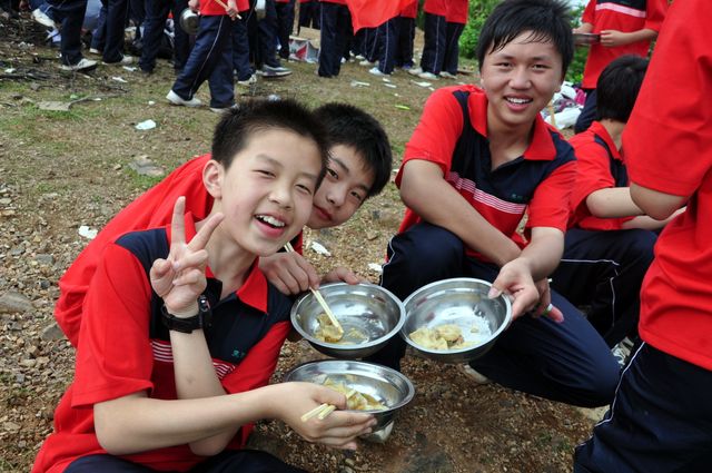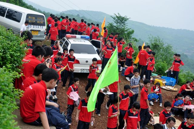 下午一点左右,校长一声令下,拍照了,孩子们便从四面八方涌来,有的放下手中的柴火,有的走出鹿峰寺,有的离开电视塔……在山顶的一个三角形的空地上,孩子们欢呼雀跃。高呼校训口号“正源正源,勇往直前;敢打敢拼,敢为人先”,镜头录下了他们激情洋溢的青春的身影。