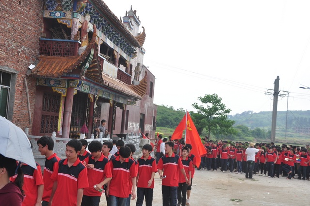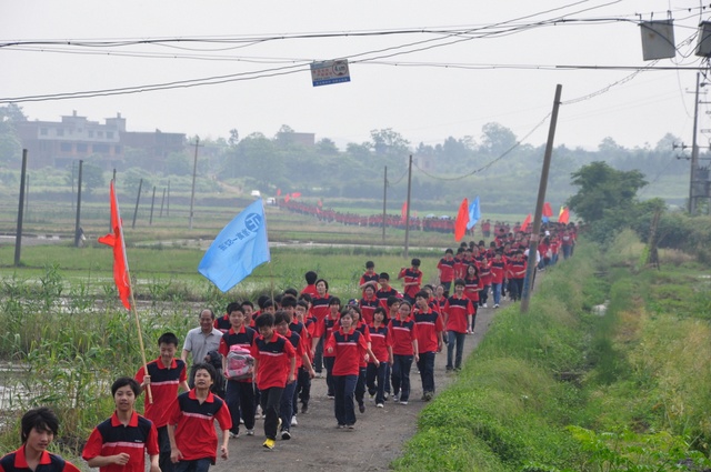 继学前班和初一远足之后,时隔几个下雨的日子,5月16日,正源学校准高一年级500多学生在罗校长和老师的带领下,绕道东二路经白洋村进入蔡伦科技园再辗转盘古庙。大家精神饱满,行走在乡村小路,一路风光一路歌。在盘古庙观赏诸多栩栩如生的人物雕像和精巧的建筑工艺,深深感受到传统文化的无穷的魅力。中午,大家在山顶上的空坪进行野炊,饱食饺子、面条、土豆、黄瓜,不亦乐乎。下午四点半凯旋而归,圆满结束此次40多里的远足活动。