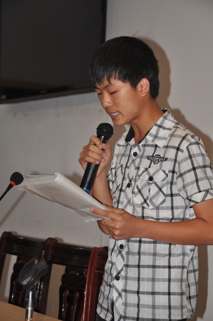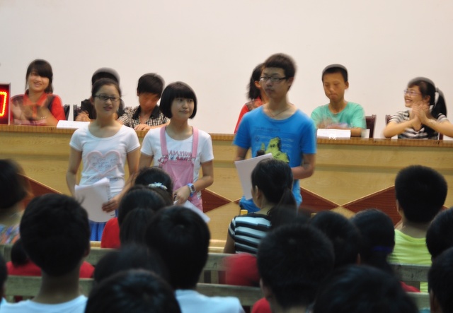 5月21日晚,153名同学相约于学校报告厅,向全体师生做了一次生动精彩的成果展示。本次活动分为六大环节。首先进行的是《论语》知识抢答,三个代表队积极踊跃,最后44班代表队以270分的优异成绩博得头彩。第二轮进行的是即兴演讲。三位选手经过抽签,依次上台,他们将《论语》的学习心得成功内化,深入浅出地结合个人的理解与体悟与大家交流。第三轮进行的是小论文宣读。在《论语》学习过程中,老师注重引领同学们整合归纳,深入探究,形成自己的看法,鼓励大家以小组为单位,形成一个凝聚力强的学习团队,共同撰写论证严密充分的小论文。现场宣读的三篇小论文均在2000字以上,字里行间奔腾着同学们的激情与智慧,令师生叹服。第四轮进行的现场默写。由主持人现场从三个班中分别抽三位同学到台上默写。在这个环节中,同学们展示了良好的素质和过硬的背诵基本功,他们个个身手不凡,在规定的十分钟时间里奋笔疾书。与此同时,台下的同学与主持人双向互动,高潮迭起。第五轮进行的是情景剧表演。三个代表队精心准备了三出情景剧《纷红的回忆》《秀才遇到兵》和《理想之光》,以另类的形式表达了同学们对《论语》理解与解构。本次活的压轴戏是辩论赛。本次辩论赛中正方的观点是“知其不可而为之”,反方的观点是“知其不可而不为”,双方辩手各逞其能,以唇枪舌剑为现场的师生演绎了一场没有硝烟的战争。经过六轮激烈的角逐,最后44班以995分获得本次活动的第一名,46班以835分位列第二,45班以765分排名第三。