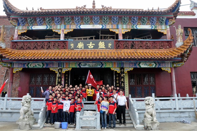 同学们在蔡伦科技园前照集体相后继续前进,远远地看到盘古庙,有的同学发出尖叫声,“盘古庙,我们马上就能看到你的真面目了!”