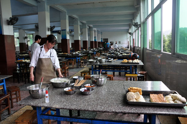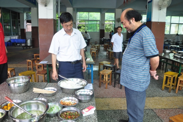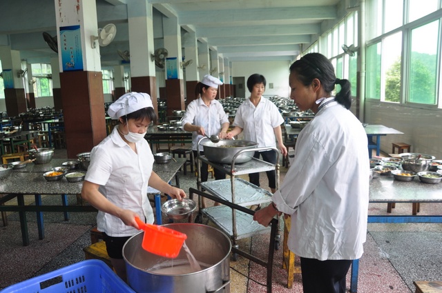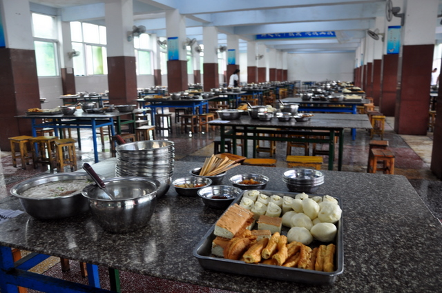 食堂工人师傅早上5点多钟就开始忙碌起来,为学生准备了丰盛的早餐,有蛋糕、油条、包子、米粉、稀饭、鸡蛋等。学校也为此腾出了两个食堂专门给高三的学生用餐,每张桌子都写好班级和姓名,整个用餐过程秩序井然。用完早餐之后,学生在广场集合,准备乘车奔向考场。