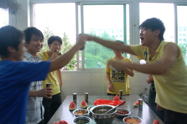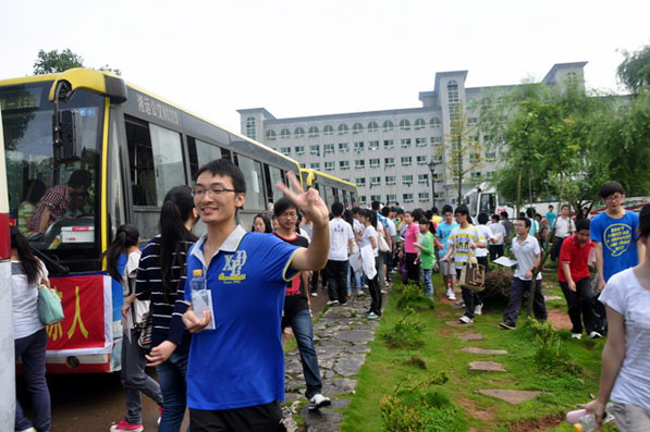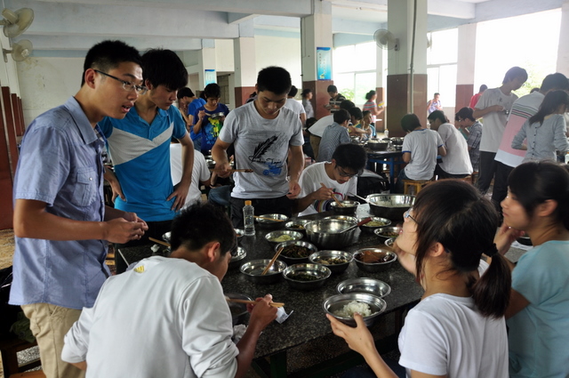 上午考完语文,将近十二点,考生坐着学校的车回到学校,每个人脸上充溢着微笑,说说笑笑走向食堂。此时的食堂,在校长的精心安排之下,已经准备了丰盛的午餐,荤素搭配,让考生吃得尽兴。中午稍作休息之后,将近两点,考生又乘坐学校的车出发了。