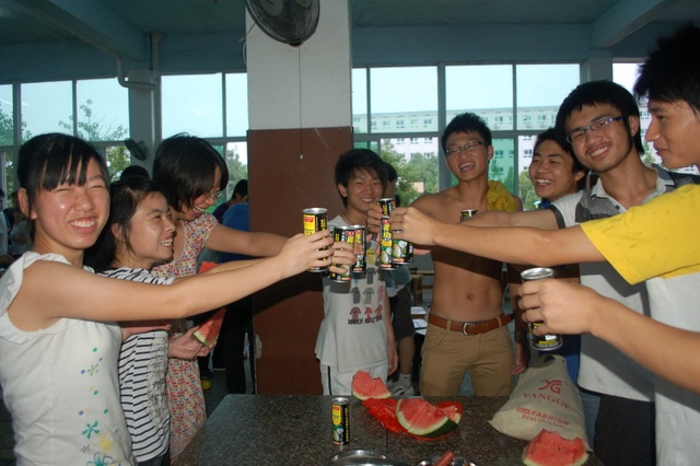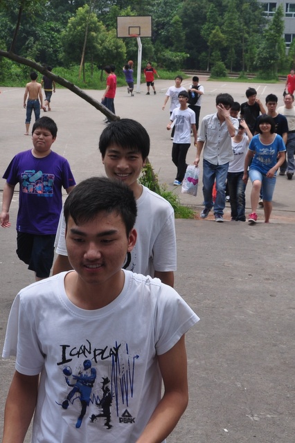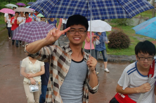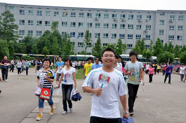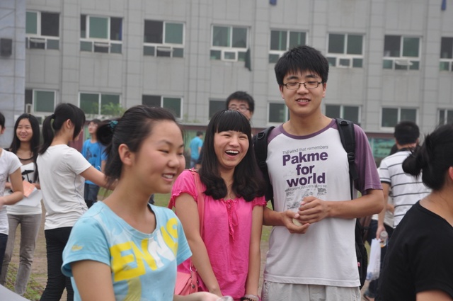 面临人生重大抉择时,考生心里难免会紧张和不安,可是在学校广场上,许多同学都在说说笑笑,女同学是三五成群地凑在一起窃窃私语,男同学则是一大群围着假山纵横天下,他们的脸上洋溢着自信、乐观的微笑。