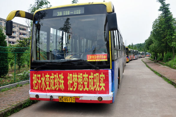 又是一年高考时,2012年6月7日,正源学校715名高考学生在警车开道,罗校长、毛支书、高三年级领导和老师的带领下,分乘二十多台车浩浩荡荡奔赴耒阳市一中和二中考点。