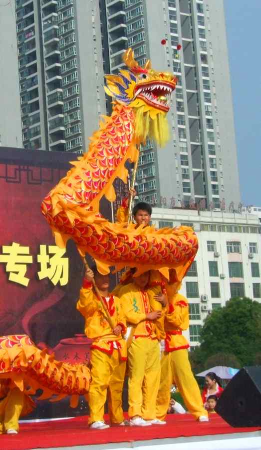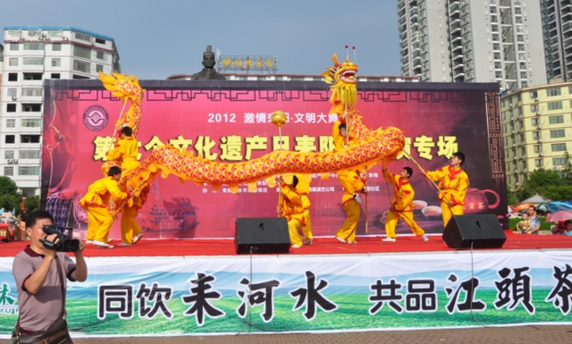2012年6月9日,是我国“第七个文化遗产日”,当日下午,由中共耒阳市委宣传部、耒阳市非物质文化遗产保护中心、市文广新局主办的耒阳市文化遗产展演演专场在发明家广场隆重举行。我校《龙腾盛世》为展演活动拉开序幕,在艳阳照耀下,活灵活现的金色长龙格外夺目,得到现场观众的一片喝彩。