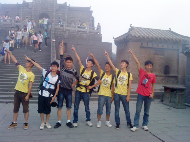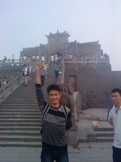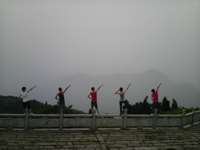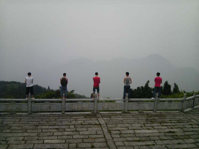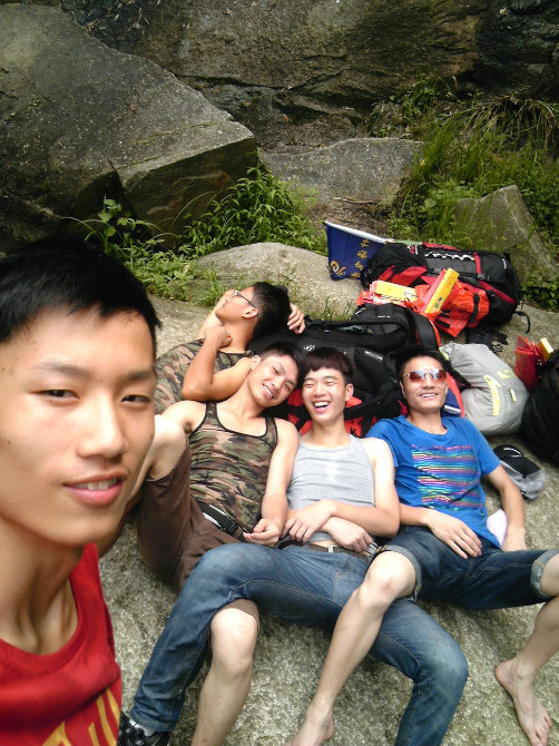慢慢地,阳光从树林间透漏下来,在山泉下,我们脱下鞋开始享受那纯自然的清凉,不羡任何事情的诱惑。一个个阶梯虽矮、却无止尽,有时很让人感到痛苦并快乐着。"半山亭还有多远?""一个小时的路程吧。""唉"这是开始时忠林的叹息。没想过到了半山亭,又迎来两位童鞋___彭捷与曹星。