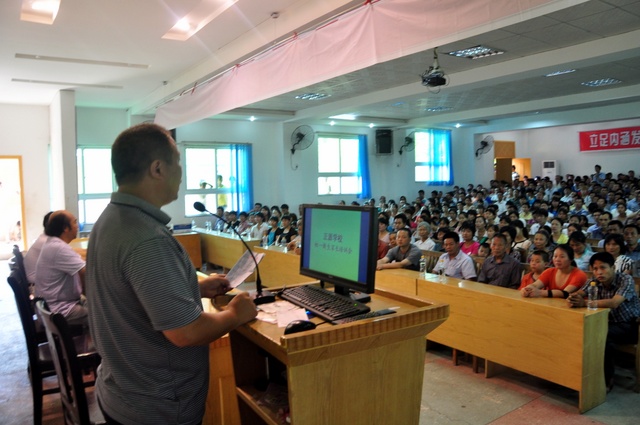 罗校长在会上介绍我校教育教学的基本情况,非常高兴地通报了我校今年高考取得的喜人成绩,由此确定我校已跻身于省优秀学校行列,说明我校分层教学及初中、高中2+4模式的成功。罗校长还向家长们介绍学校伙食特色等等。会上,罗校长对家长也提出了一些要求,如不要为孩子购买电子产品,不要拿钱给孩子,不要买零食给孩子吃等。