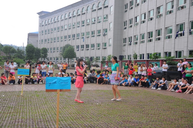 为促使学生在生活中想到英语,利用英语,加强英语口语锻炼,六月份,我校开展了轰轰烈烈的English June 英语角活动。在活动中,充分利用英语音乐盛会、超市购物、明星大比拼等形式,极大地提高了同学们的兴趣。从而,营造良好的英语口语交流的环境。